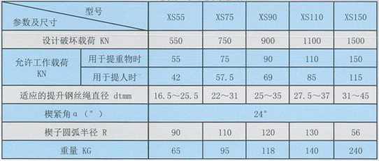 XS型楔形繩環(huán)是一種礦用提升容器的鋼絲繩懸掛裝置,該繩環(huán)使用于單繩或多繩提升容器與提升鋼絲繩的連接。其特點(diǎn)是提升容器與鋼絲繩的連接快速、方便、可靠。該繩環(huán)是礦井提升容器與鋼絲繩連接較為安全的懸掛裝置。
